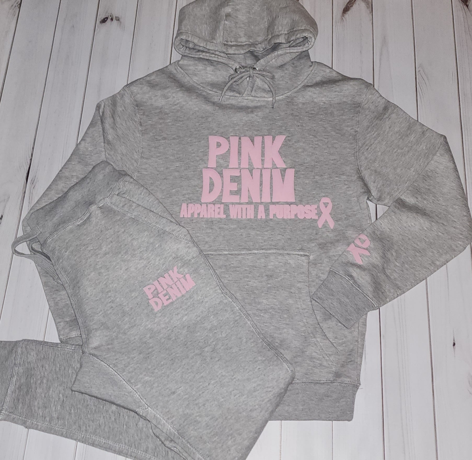 This plush sweatsuit provides warmth and style. These 3D Puff Hooded sweatsuits are super soft and stylish. A great way to spread awareness and to remember to do your self exams, your worth it!