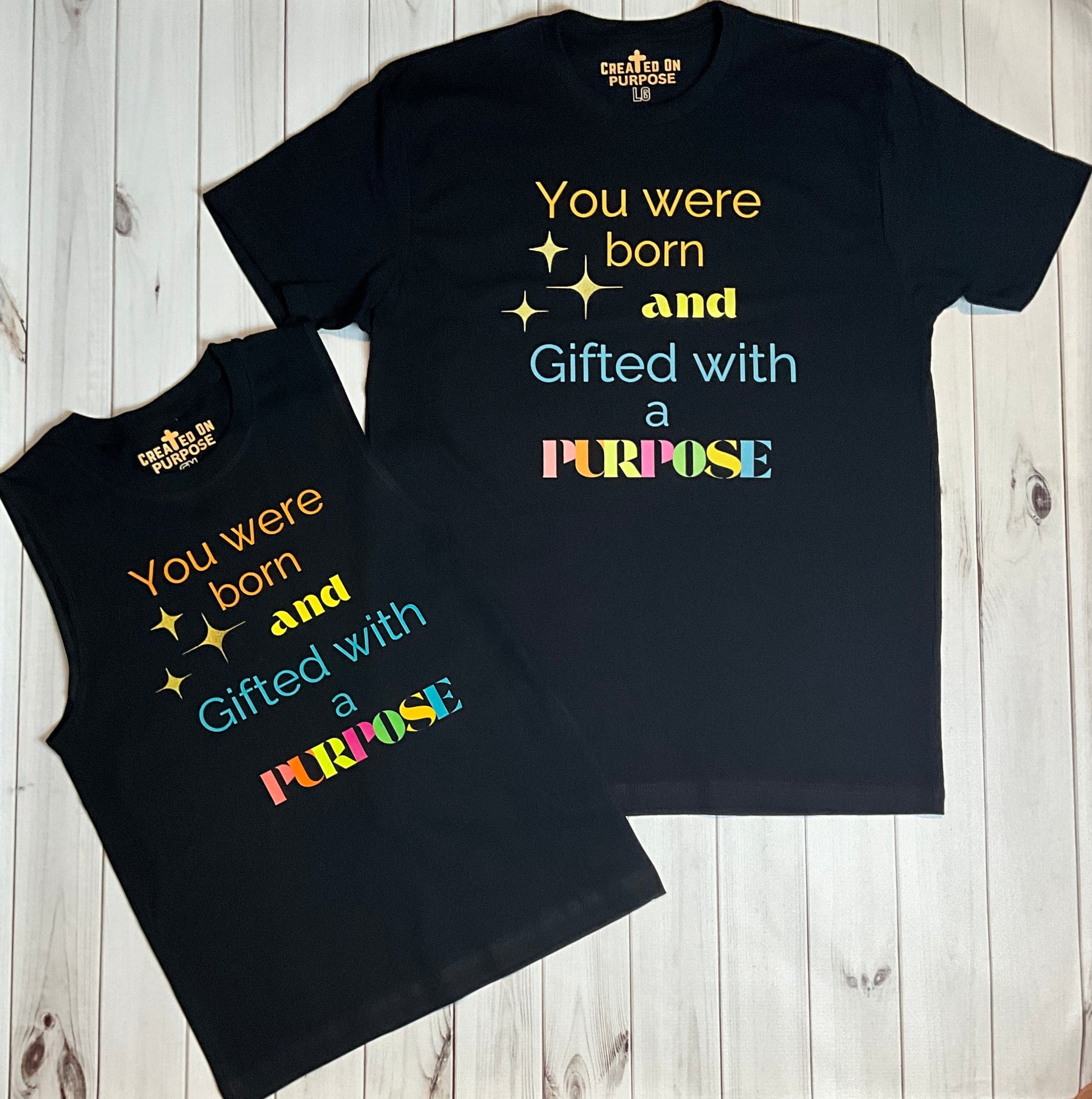 "Gifted with a Purpose" T-shirts are more than just clothing; they are a statement of intentionality and self-discovery. Designed for those on a journey to find and live out their purpose, each shirt embodies the power of purpose-driven living. Made from high-quality materials, these shirts offer comfort and inspiration, encouraging wearers to embrace their unique gifts and share their purpose with the world.