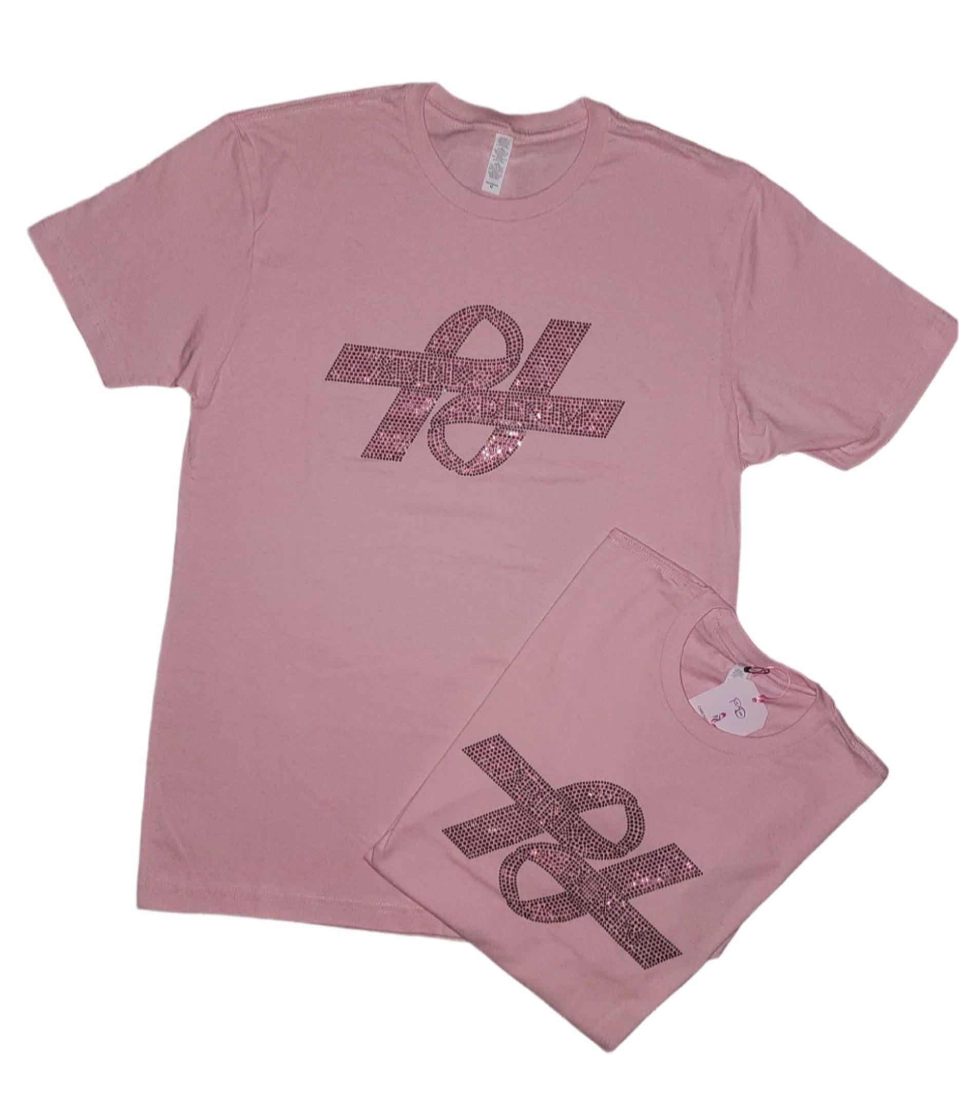 This Pink on Pink Rhinestone Double Ribbon Design is UNISEX T-shirt (garments that are sized based on mens measurements, so ladies please order a size down)