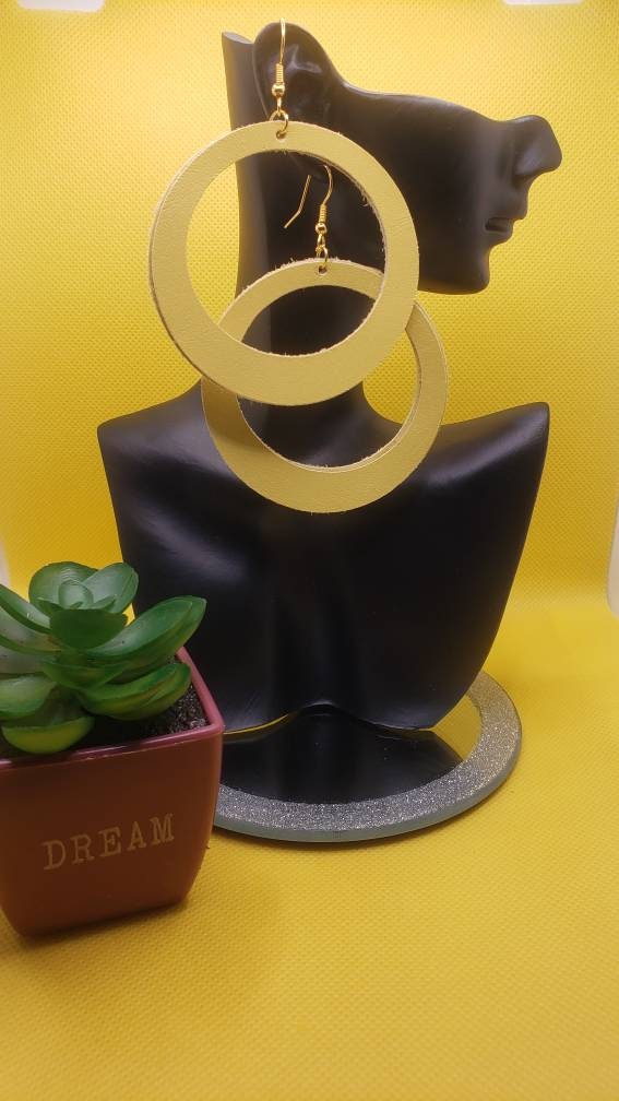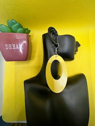 These yellow leather hoops are handmade with genuine leather and hypoallergenic hooks.
