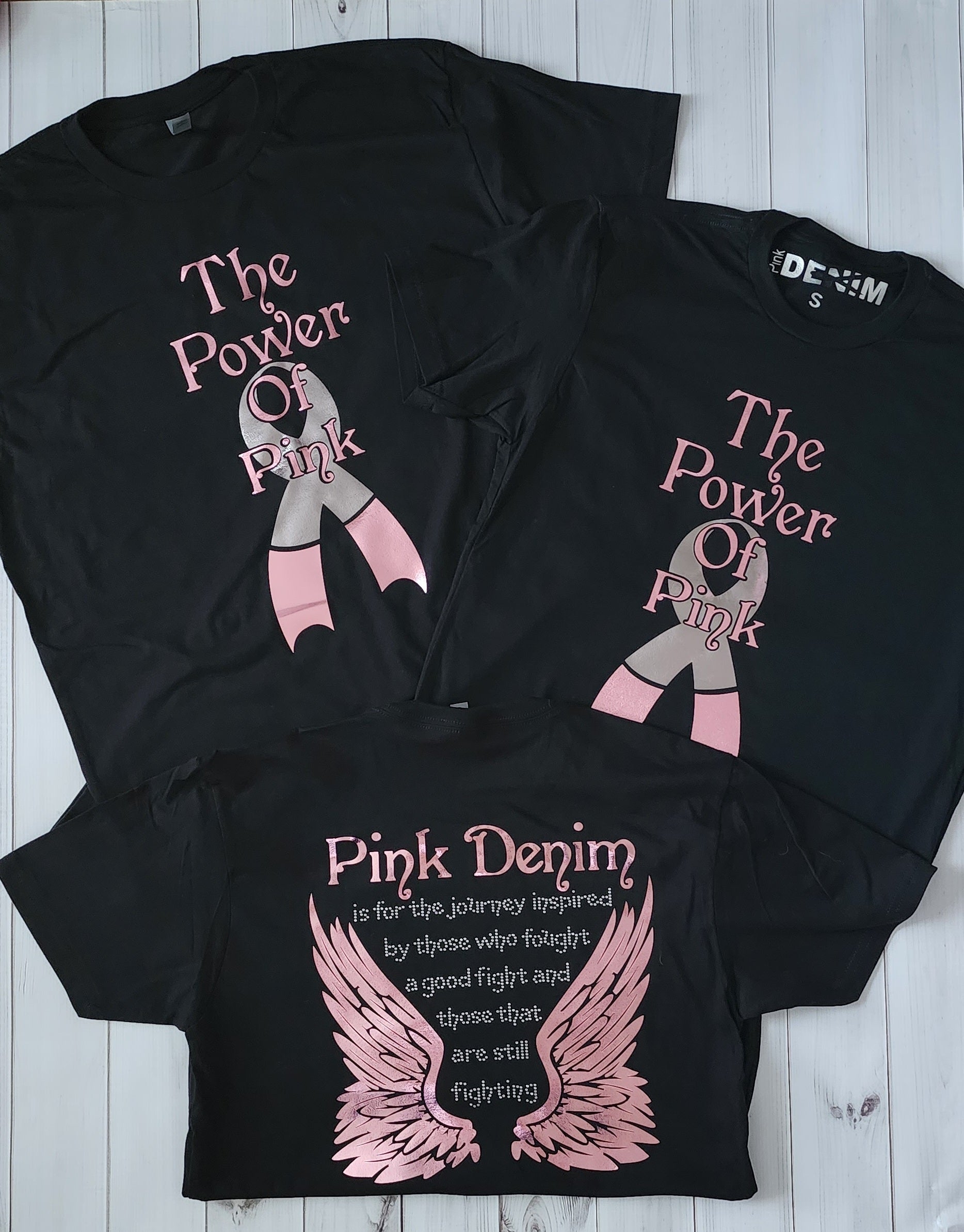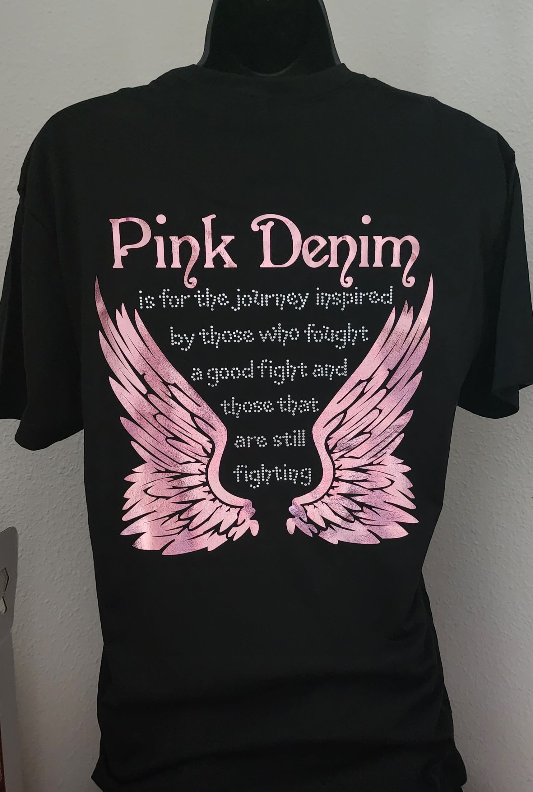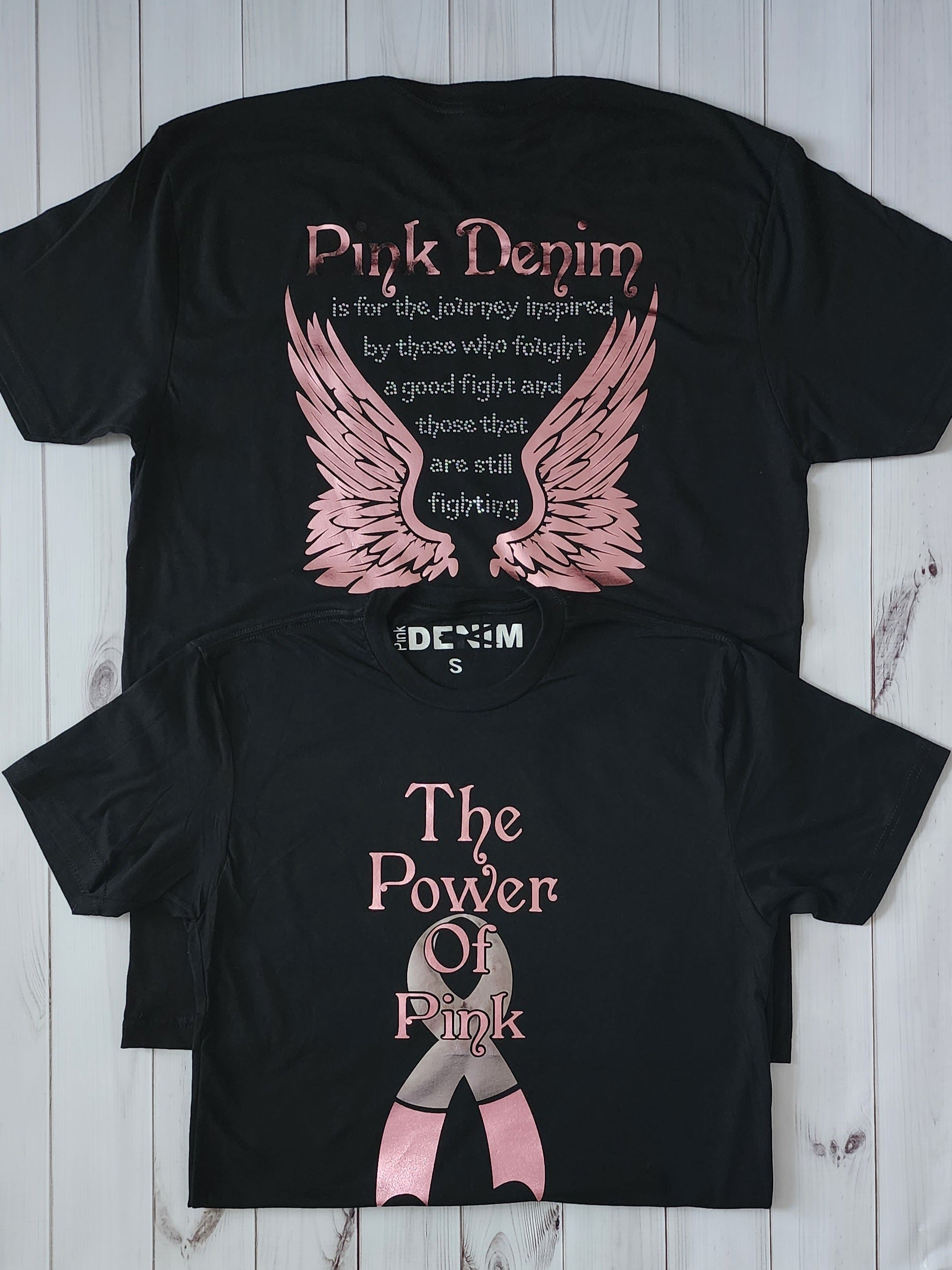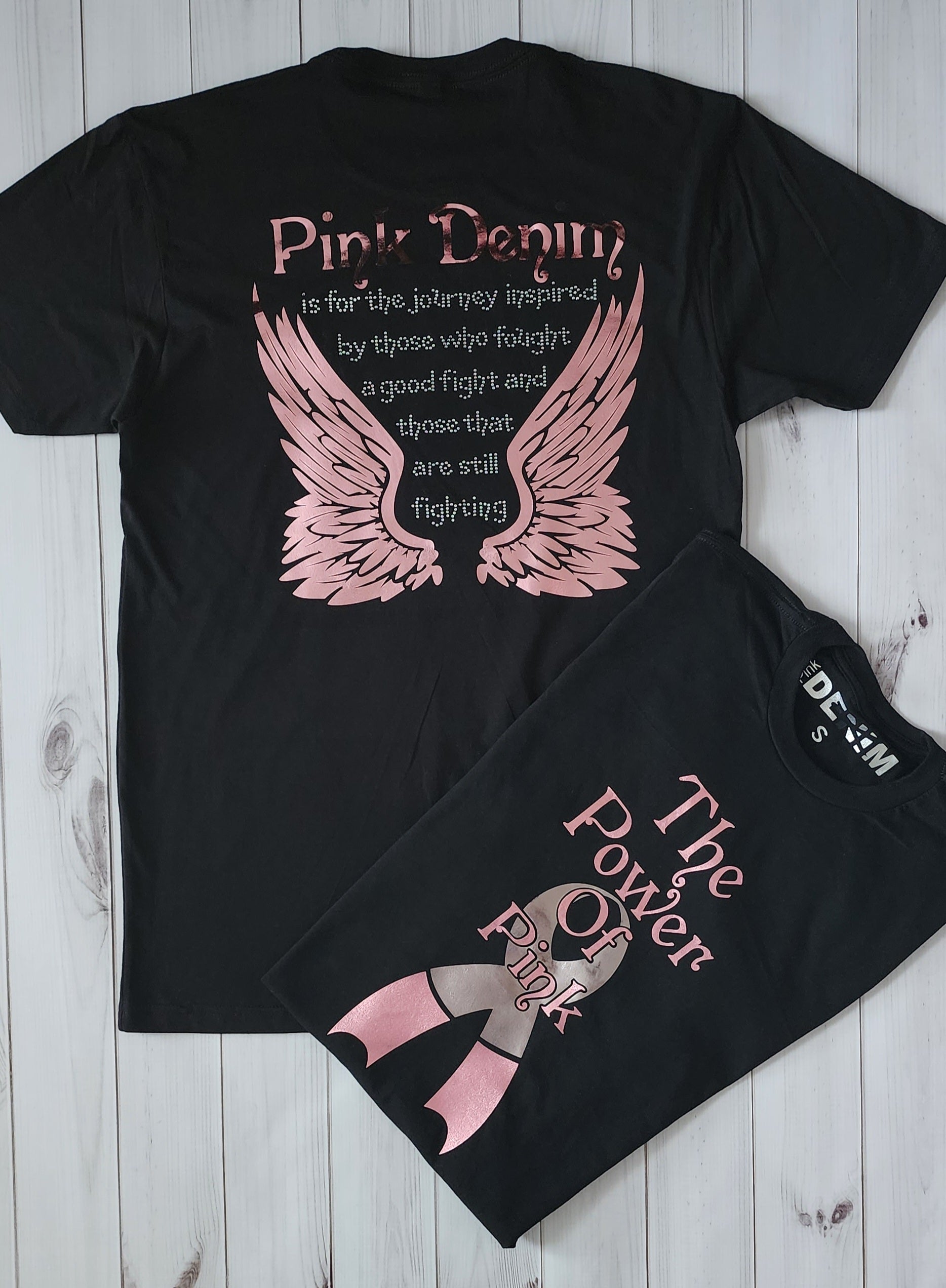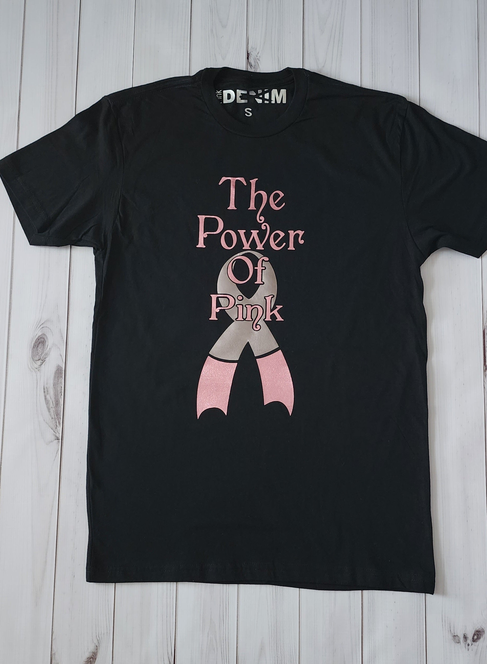 The Power of Pink T-shirt is our signature tee. This Design has been our most popular sellers! Now designed in pink foil and clear rhinestones.